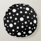 White on Black Polka Dot Pattern Round Cushion