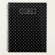 Destei's white polka dots pattern on a black background color. There is also a personalizable text area for a name or other custom text.