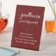 This modern and elegant white on dark red wedding men's bathroom pedestal sign is a great idea to encourage your guests to finish up and get back on the dance floor! This is part of the Alejandra collection.