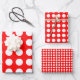 White on Red Different Sizes Horizontal Polka Dots Wrapping Paper Sheet