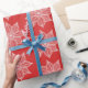 White on Red Sketchy Flowers Wrapping Paper