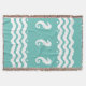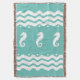 WHITE on teal aqua BLUE SEA HORSE coastal living Throw Blanket