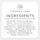 Modern, white or custom colour ingredient list product label with your custom logo. Change colours, fonts, move and resize the logo and other elements with the design tool. Follow us on Facebook: @businessstationery for more products, news, sales and more.