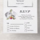 A beautiful all-in-one formal spring or summer invitation featuring luxurious white orchid flowers in full bloom set against a white background that has faux silver square frame aroun black templates for your personalised wording. The top flap on the back has a single white orchid on a black background with the bridal couples names and date of the special event, while the bottom third has a tear off response card with personalised rsvp address for your guests to complete. These are ideal for upmarket coastal; outdoor garden; jungle and tropical weddings, engagements, anniversaries; bridal showers and birthday parties. Simply change the wording to suit your special event or occasion.