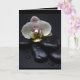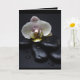 Calming and minimal white orchid in stark contrast against black zen stones design.
