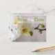 The "White Orchid" wedding series features an elegant photo of a white phalaenopsis orchid flower against a light grey background with customisable texts a modern sans-serife font in white, green and grey.