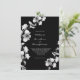 Elegance meets simplicity in our black wedding invitation with white text. Illustrated white orchids adorn the edges, creating a touch of sophistication. The back of the card showcases the bride and groom's names along with the date, making it a perfect keepsake. Set the tone for your special day with this timeless and refined invitation that captures the essence of love and celebration.