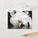 This postcard features a unique design with white orchids emerging from water, as if in a dream. White orchids symbolize innocence and purity, as well as elegance and reverence. Send a hello, a thank you, or an invitation with this beautiful floral postcard. The back has a small repeat of the orchid image in the left top column.