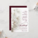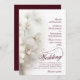 This beautiful wedding invitation features a gorgeous design with a sprig of dreamy white orchids. The right justified burgundy coloured text features a fancy calligraphy script with a long curly tail making it both modern and classic. Elegant, sophisticated and chic way to invite your friends and family to share in your special day. The back of the card has a QR code for your wedding website and a brief note instructing people to visit the site for details and RSVP.