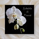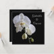 The pretty square White Orchid on Black Wedding Invitation add a touch of class to your marriage ceremony and reception. This elegant custom flowery wedding invite features a close up floral photograph of a white phalaenopsis orchid flower blossom on a black background.