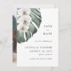 Bring your tropical dream wedding vision to life with this uniquely beautiful wedding Save the Date announcement. It features a trio of elegant white orchids and a beautiful Monstera leaf in painted watercolors placed prominently on the front of the card. The design is both simple and elegant with a minimalist look energised by the tropical botanical elements. This design is a wonderful choice for coastal weddings, destination weddings or even city weddings that use a magical tropical theme. The back of the card has a text template for including your desired photo. Personalise the text template with your wedding info along with a portrait photo on the back.