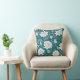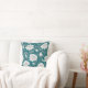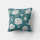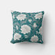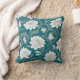 White oriental floral pattern on teal background throw pillow.