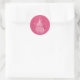 A sketch of a woman in a beautiful gown in white against a brushed pink background.