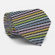 Abstract digital art of staticky pastel rainbow coloured stripes including pink, gold, ecru, lime green, pastel blue, blue/grey, and lavender, outlined by thinner solid white stripes against a black background.