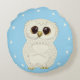 White Owl and Stars on Light Blue Round Cushion