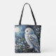 White Owl On Branch in Moonlight Painting Tote Bag