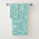 White paisley pattern turquoise background bath towel set