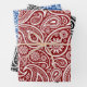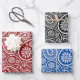The white seamless vintage paisley pattern on 3 different background colors. Red, blue and black.