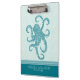 Cool turquoise blue octopus simple illustration with white paisley pattern overlay. Ever slight mint green background colour. Customisable marine biologist, Clipboard template. Customisable back and front.