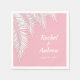 Pink background for palm fronds in white on these napkins - 2 sizes available - CHANGE the wording, change the fonts, change the background colour with our colour picker tool, just click CUSTOMIZE button. See MATCHING invitations and more in our store ---> http://bit.ly/2UyWIVj <---