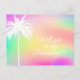 An invitation featuring a White Palm Tree on a multicolor background.