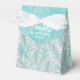 Party Favour boxes with white palm fronds on an ocean turquoise background. Perfect for any celebration, birthday party, bridal shower, engagement party, retirement party, wedding and more. Click CUSTOMIZE to change the background colour, the fonts and to add wording. See invitations and MATCHING items in our store ---> http://bit.ly/2UyWIVj <---