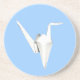 Photograph of a folded white paper crane printed on blue (customisable) background colour. Image 2008 by Margaret E. Cmelik.