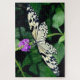 This white Paper-kite Butterfly is a large tree nymph also called the rice paper butterfly. It is a relative of the Monarch butterfly. He sips nectar from a purple flower isolated on a background of green leaves and vines.