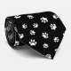 White Paw Prints Pattern on Black Background Tie