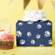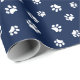 White Paw Prints Pattern on Blue Wrapping Paper