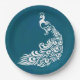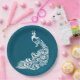 White Peacock on Teal Chic Stylish Art Deco Design Paper Plate