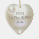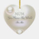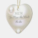 This lovely heart shaped ceramic keepsake ornament is so classy. It features a white pearl effect design and the editable text "Mum you mean the world to me"