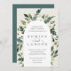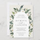 Our White Peony wedding invitation surrounds your wedding day details with a graceful arch of painted watercolor greenery, botanical foliage and white rose and peony flowers.