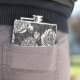The flask itself is fine. It’s a cheap flask, obviously bought in bulk, however am prepared to overlook that. Given that it is a personalized item, I would have liked to have seen gift boxing instead of the generic packaging. Terrible printing, and/or quality. It’s a cheap, tacky vinyl. It is not cut straight and is also applied in a way that it is overhanging the bottom, causing the glue to catch on items and it will eventually roll and tear, damaging the wrap.