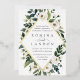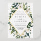 Our White Peony wedding invitation surrounds your wedding day details with a modern geometric frame of painted watercolor greenery, botanical foliage and white rose and peony flowers. Gold foil trim completes the design for a luxe finish.