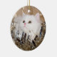 Beautiful white persian kitty cat has been playing in the Christmas garland decorations being naughty but cute cat lovers ceramic Christmas holiday ornament