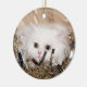 Beautiful white persian kitty cat has been playing with the Christmas garland and has a guilty expression cute cat lovers ceramic Christmas holiday ornament