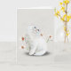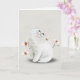 Cute white Persian cat with white daisy flowers on speckled background for general birthday.