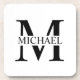 featuring personalised black monogram in classic serif font style with box of name in the middle of monogram on white background.