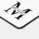 feature personalised black monogram in classic serif font style with box of name in the middle of monogram on white background.