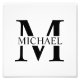 featuring personalised black monogram in classic serif font style with box of name in the middle of monogram on white background.
