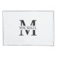 featuring personalised black monogram in classic serif font style with box of name in the middle of monogram on white background.