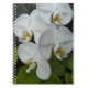 A personal sized, spiral bound notebook that features a cover photo image of lovely, white Phalaenopsis Orchid flowers, commonly known as Moth Orchids. A lovely, floral design!
