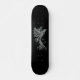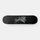 decorative artwork of an abstract phoenix bird spreading his wings and taking of in white on a black skateboard
