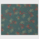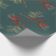White Pine Branch Red Ilex Berries Slate Green Wrapping Paper