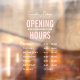 Modern business opening hours window cling template, featuring white and pink text on transparent background. This fully editable window decal is a great way to display your company's opening times on your shop window - can be used for your store, salon or spa, cafe, restaurant or any other business.