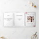 An elegant tri-fold program. A white background, a faux silver frame, pink and white florals and space for a photo. Personalise and add name, dates and your text.