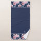 White, pink flowers on dark blue. Watercolor vintage floral pattern.
