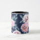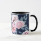 White, pink flowers on dark blue. Watercolor vintage floral pattern.