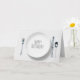 white dinner plate with silverware on soft textured background for birthday